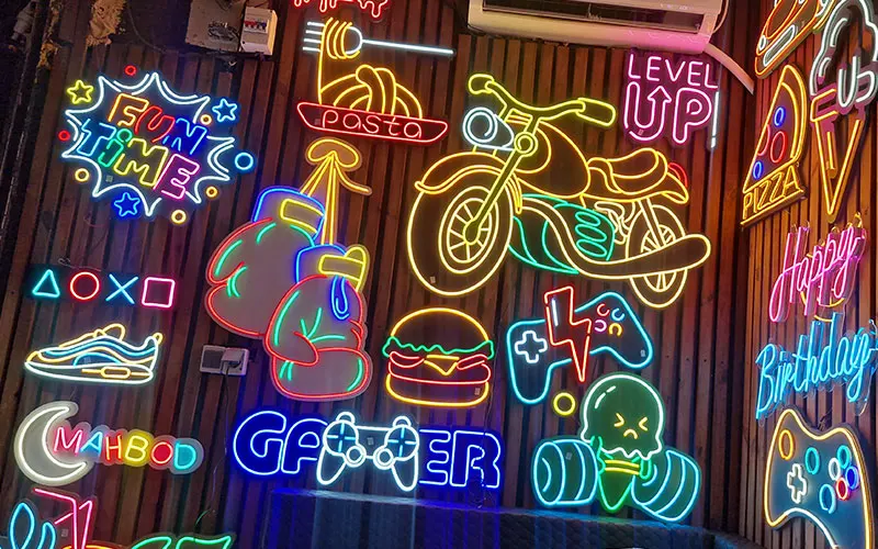 ۱. نئون شیشهای (نئون کلاسیک) – حالوهوای قدیمی، جذابیت بینهایت